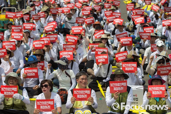 (서울=포커스뉴스) 29일 오후 서울 용산구 서울역 앞에서 보건의료노조의 총력투쟁 결의대회 집회가 열리고 있다.