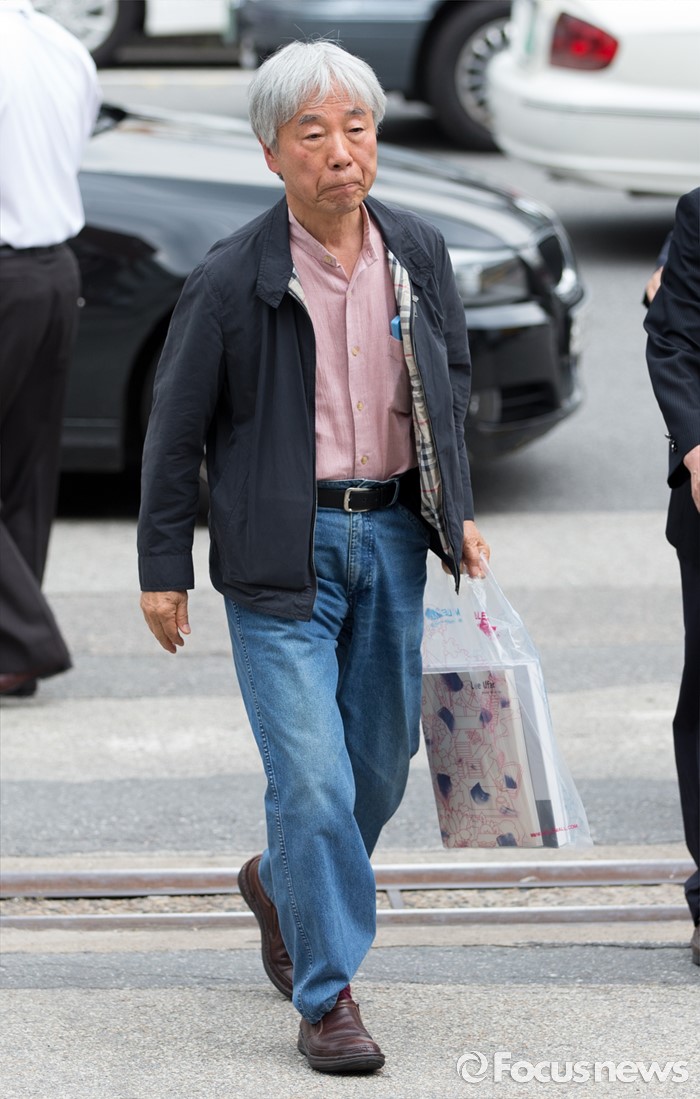 (서울=포커스뉴스) '위작 논란'에 휩싸인 현대미술가 이우환(80) 화백이 29일 오후 서울지방경찰청 지능범죄수사대로 최종 입장을 밝히기 위해 출석하고 있다.