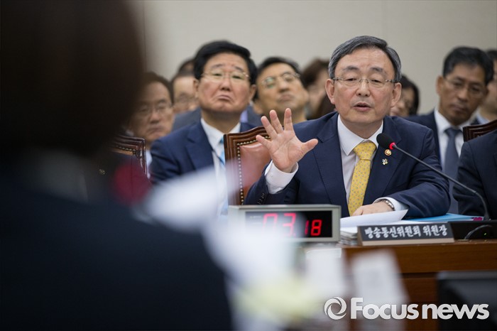 (서울=포커스뉴스) 최성준 방송통신위원장이 29일 오후 서울 여의도 국회에서 열린 미래창조과학방송통신위원회 전체회의에 출석해 의원들 질의에 답하고 있다.