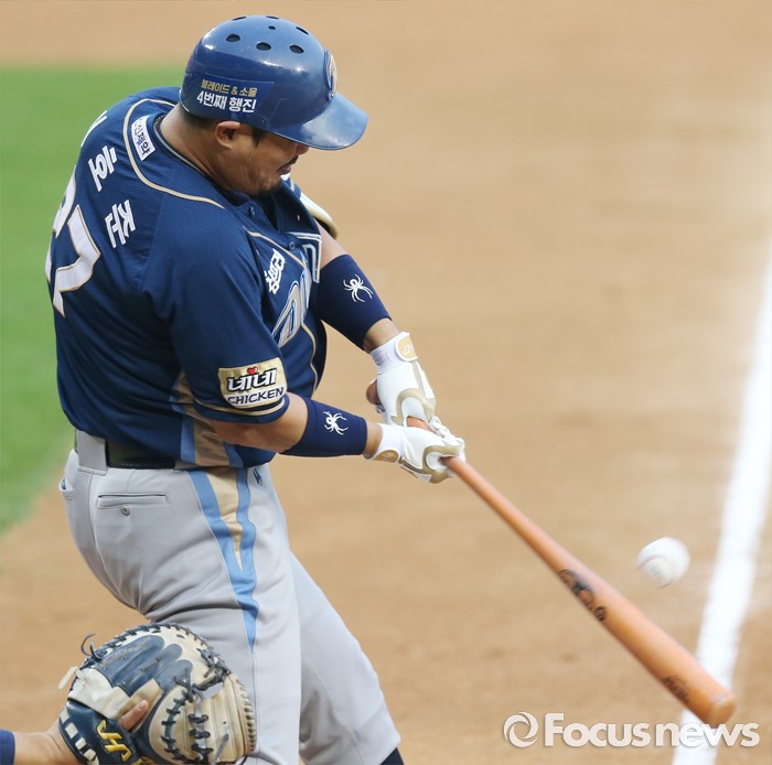 (서울=포커스뉴스) 29일 서울 잠실구장에서 열린 2016 프로야구 NC-두산 경기 3회초 1사 1,2루에서 NC 이호준이 1타점 우전 적시타를 날리고 있다.