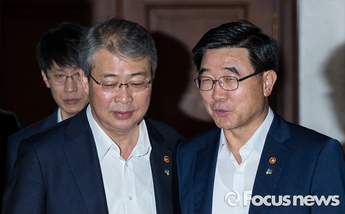 (서울=포커스뉴스) 30일 오전 서울 종로구 정부서울청사에서 열린 제2차 산업경쟁력 강화 관계장관회의에 임종룡 금융위원장과 이기권 고용노동부 장관이 참석하고 있다.