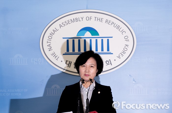 (서울=포커스뉴스) 전당대회 출마를 선언한 추미애 더불어민주당 의원이 30일 오전 서울 여의도 국회 정론관에서 새만금 공항 건설 공약과 관련 기자회견을 하고 있다.
