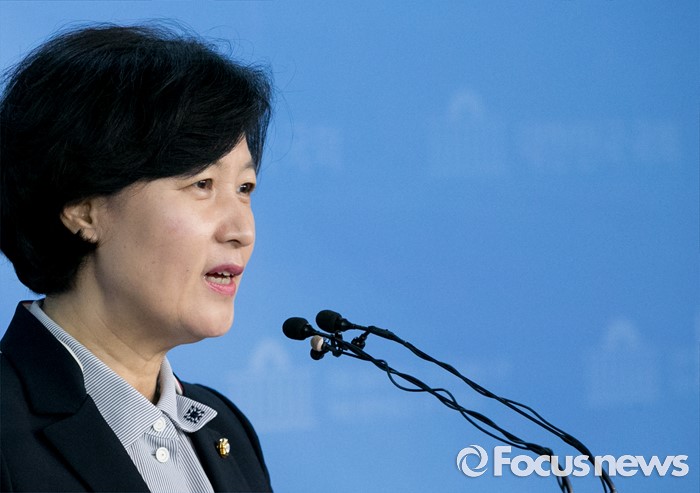 (서울=포커스뉴스) 전당대회 출마를 선언한 추미애 더불어민주당 의원이 30일 오전 서울 여의도 국회 정론관에서 새만금 공항 건설 공약과 관련 기자회견을 하고 있다.