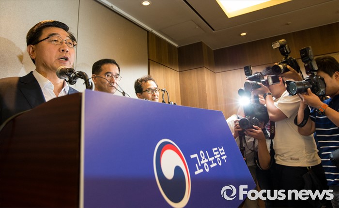 (서울=포커스뉴스) 30일 오전 서울 중구 프레스센터에서 이기권 고용노동부 장관이 조선업 특별고용지원업종 지정안 심의결과를 발표하고 있다.
