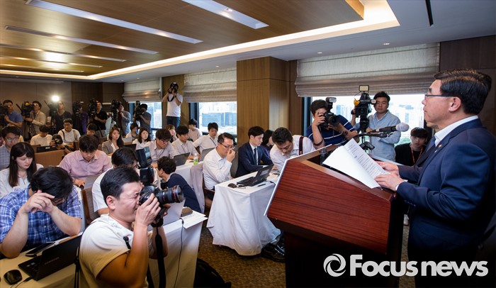 (서울=포커스뉴스) 30일 오전 서울 중구 프레스센터에서 이기권 고용노동부 장관이 조선업 특별고용지원업종 지정안 심의결과를 발표하고 있다.