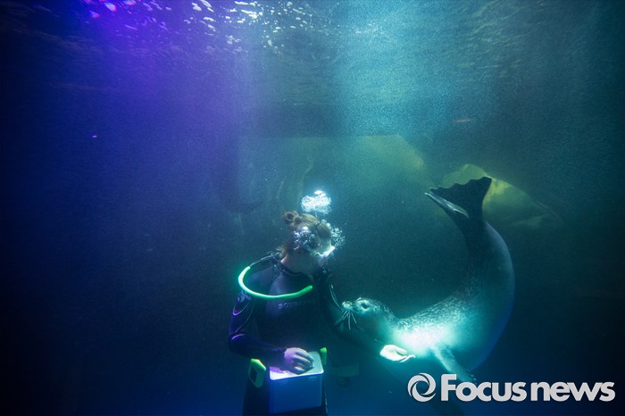 (서울=포커스뉴스) 30일 오전 서울 영등포구 여의도 한화 아쿠아플라넷63에서 열린 수족관 리뉴얼 오픈 기념행사에서 다양한 해양생물들이 보이고 있다.