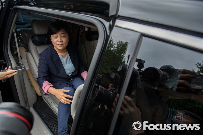(서울=포커스뉴스) 친인척을 보좌진으로 채용하는 등 여러 논란으로 위기에 놓인 서영교 더불어민주당 의원이 30일 오후 서울 여의도 국회에서 기자회견을 마친 뒤 취재진에게 질문을 받고 있다.