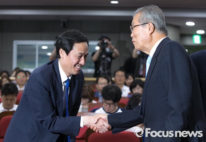 | △ 인사하는 김종인-우상호 |