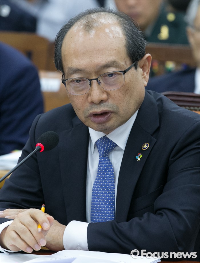 (서울=포커스뉴스) 30일 오후 서울 여의도 국회에서 열린 국방위원회 전체회의에 참석한 장명진 방위사업청장이 의원들의 질의에 답하고 있다.