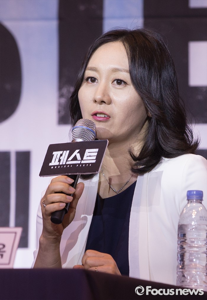 (서울=포커스뉴스) 30일 오후 서울 성동구 디노체 컨벤션에서 열린 뮤지컬 '페스트' 제작발표회 참석한 송경옥 책임 프로듀서가 인사말을 하고 있다.