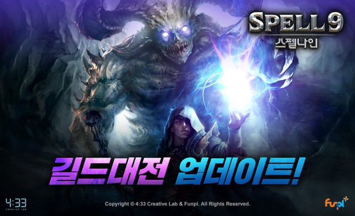 (서울=포커스뉴스) 네시삼십삼분(대표 장원상·박영호, 이하 4:33)은 자사가 서비스하는 모바일게임 '스펠나인'(개발사 펀플)에 길드대전 업데이트를 진행했다고 30일 밝혔다.