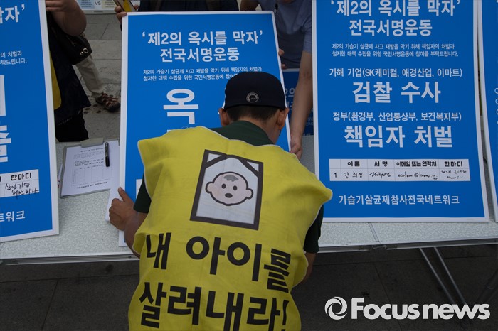 (서울=포커스뉴스) 30일 오후 서울 종로구 광화문광장에서 가습기살균제참사전국네트워크 회원들이 '제2의 옥시'를 막기 위한 서명운동 캠페인을 벌이고 있다.