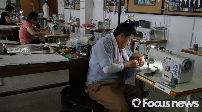 (청주=포커스뉴스) 30일 오후 충북 청주시 서원대학교에서 열린 충북 장애인기능경기대회 양복, 양장, 한복 종목 참가자가 과제를 수행하고 있다.