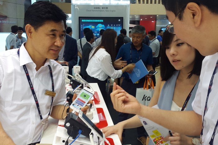 한편, 코나아이는 7월 중 코나머니 클로즈드 베타 서비스(상용화에 앞서 정해진 집단에게만 실시하는 서비스)를 마치고 올해 3분기 중 코나머니 서비스를 국내에서 본격 실시할 예정이다.코나아이가 'MWC 상하이 2016'에서 개방형 결제 플랫폼 '코나머니'를 선보이고 있다.<사진제공=코나아이>