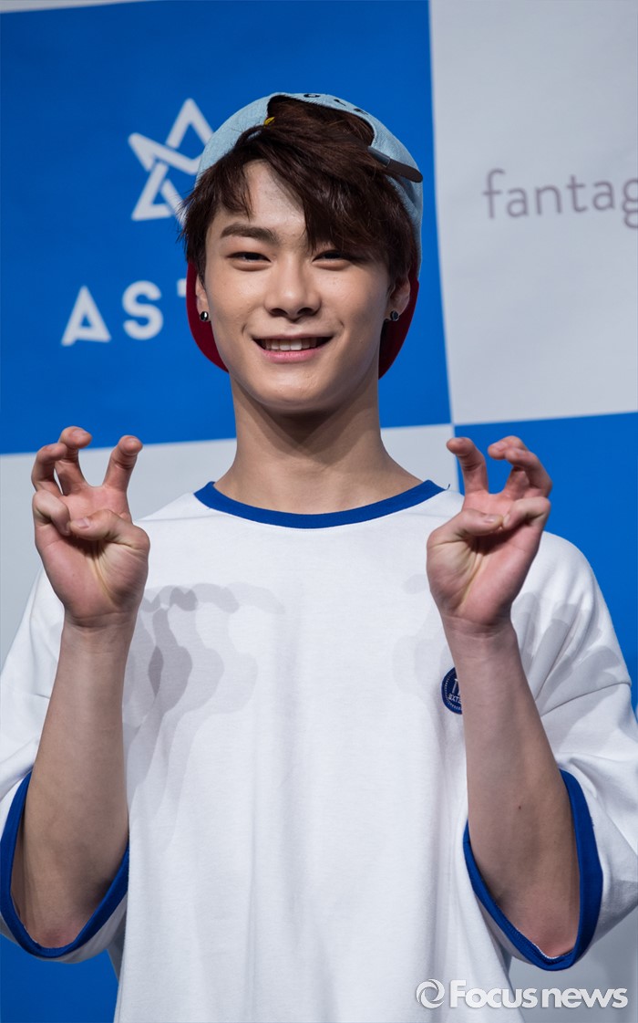 (서울=포커스뉴스) 30일 오후 서울 강남구 일지아트홀에서 열린 아이돌 그룹 아스트로의 두번째 미니앨범 'Summer Vibes' 발표 쇼케이스에 참여한 멤버 문빈이 포토타임을 갖고 있다.