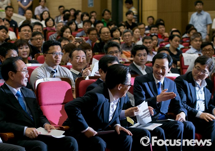 이들은 한편으로는 손을 잡으면서도 민생을 지키는 대한민국 대표 야당을 목표로 앞으로도 치열한 경쟁을 벌일 것으로 관측된다.(서울=포커스뉴스) 30일 오후 서울 여의도 국회 의원회관에서 열린 전국가맹점주 피해사례 발표 및 관련법 개정촉구 대회에 참석한 우상호(오른쪽 두번째) 더불어민주당 원내대표가 박지원(왼쪽 두번째) 국민의당 원내대표에게 먼저 축사를 권하고 있다. 왼쪽 첫번째는 노회찬 정의당 원내대표. 2016.06.30 박동욱 기자