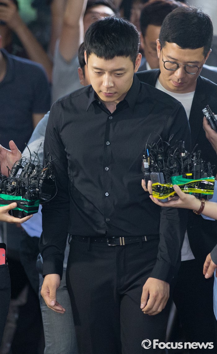 (서울=포커스뉴스) 성폭행 혐의로 4명의 여성에게 연이어 피소된 가수 겸 배우 박유천이 30일 오후 서울 강남경찰서로 출석하고 있다.