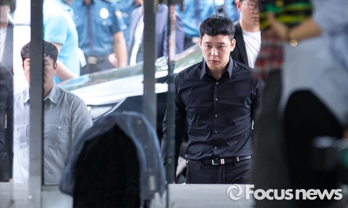 (서울=포커스뉴스) 성폭행 혐의로 4명의 여성에게 연이어 피소된 가수 겸 배우 박유천이 30일 오후 서울 강남경찰서로 출석하고 있다.