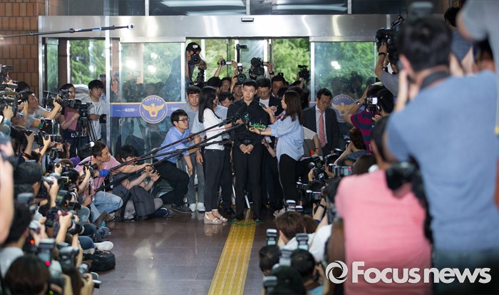(서울=포커스뉴스) 성폭행 혐의로 4명의 여성에게 연이어 피소된 가수 겸 배우 박유천이 30일 오후 서울 강남경찰서로 출석하고 있다.