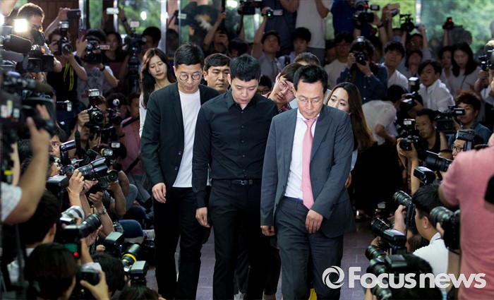 (서울=포커스뉴스) 성폭행 혐의로 4명의 여성에게 연이어 피소된 가수 겸 배우 박유천이 30일 오후 서울 강남경찰서로 출석하고 있다.