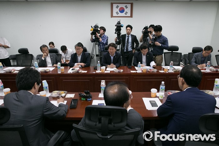 (서울=포커스뉴스) 1일 오전 서울 여의도 국회 의원회관에서 영남권 신공항 백지화 및 대구 공군비행장 이전과 존치문제 등 논의를 위해 열린 새누리당 대구지역 의원들과의 간담회에 참석한 권영진 대구시장과 의원들이 대화하고 있다.