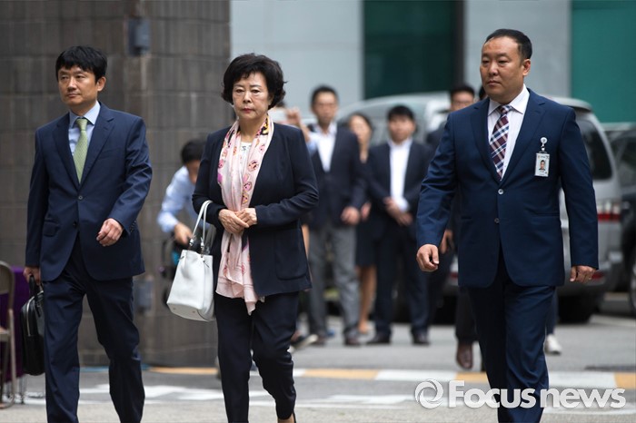 (서울=포커스뉴스) 신영자(74) 롯데장학재단 이사장이 검찰 조사를 받기 위해 1일 오전 서울 서초구 서울중앙지검으로 들어서고 있다. 신 이사장은 롯데면세점 입점 특혜 제공 대가로 20억원 가량을 제공받은 혐의를 받고 있다.