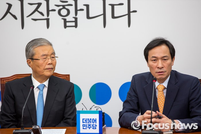 (서울=포커스뉴스) 우상호 더불어민주당 원내대표가 1일 오전 서울 여의도 국회에서 열린 비상대책위원회의에 참석해 모두발언 하고 있다.