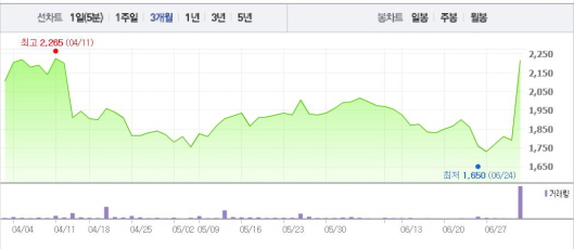 수산중공업과 수산서비스의 합병비율은 1대 32.7523954이고 합병기일은 8월1일이다.주가흐름<사진출처=네이버 캡쳐>