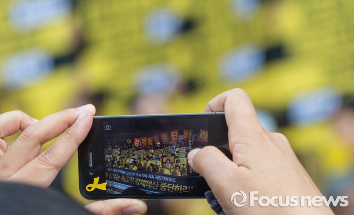 | △ 기자회견 담는 스마트폰 |