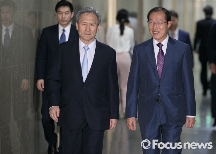 (서울=포커스뉴스) 1일 오전 서울 여의도 국회에서 열린 운영위원회 전체회의에 이원종(오른쪽) 대통령비서실장과 김관진 국가안보실장이 참석하고 있다.