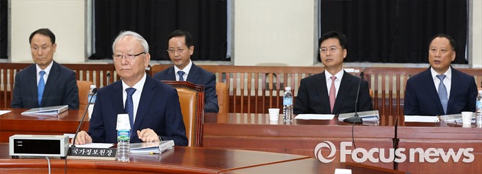 (서울=포커스뉴스) 1일 오전 서울 여의도 국회에서 열린 정보위원회 전체회의에 이병호 국정원장과 차장들이 자리하고 있다.