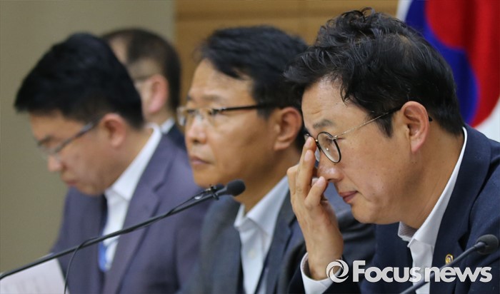(세종=포커스뉴스) 이정섭 환경부 차관이 1일 오전 세종시 정부세종청사 6동 브리핑룸에서 미세먼지 관리 특별대책 세부이행계획을 발표하고 있다. 정부는 브리핑에서 2020년까지 친환경차 보급에 3조원, 충전인프라에 7600억원, 노후경유차 조기폐차에 1800억원을 투자하고 금년 7월중 에너지상대가격 조정 연구 착구, 석탄화력발전도 미세먼지 저감대책 발표, 노후경유차 수도권 운행제한 시행 방안 확정 등 핵심대책의 구체와 및 일정단축 등을 주요내용으로 발표했다. 왼쪽부터 김헌정 국토교통부 대중교통과장, 민상기 기획재정부 신성장정책과장, 김용래 산업통상자원부 에너지산업국장, 이정섭 차관.