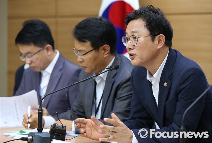 (세종=포커스뉴스) 이정섭 환경부 차관이 1일 오전 세종시 정부세종청사 6동 브리핑룸에서 미세먼지 관리 특별대책 세부이행계획을 발표하고 있다. 정부는 브리핑에서 2020년까지 친환경차 보급에 3조원, 충전인프라에 7600억원, 노후경유차 조기폐차에 1800억원을 투자하고 금년 7월중 에너지상대가격 조정 연구 착구, 석탄화력발전도 미세먼지 저감대책 발표, 노후경유차 수도권 운행제한 시행 방안 확정 등 핵심대책의 구체와 및 일정단축 등을 주요내용으로 발표했다. 왼쪽부터 김헌정 국토교통부 대중교통과장, 민상기 기획재정부 신성장정책과장, 김용래 산업통상자원부 에너지산업국장, 이정섭 차관.