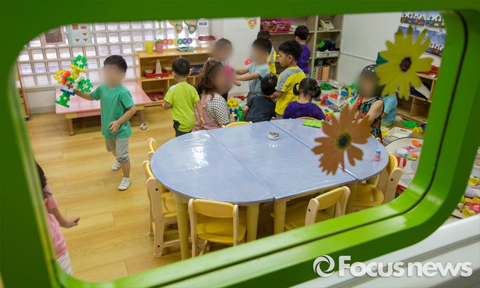 (서울=포커스뉴스) 어린이집을 종일반과 맞춤반으로 나눈 맞춤형 보육 제도가 시행된 1일 서울 성동구 신영창의어린이집에서 원아들이 수업을 하고 있다.