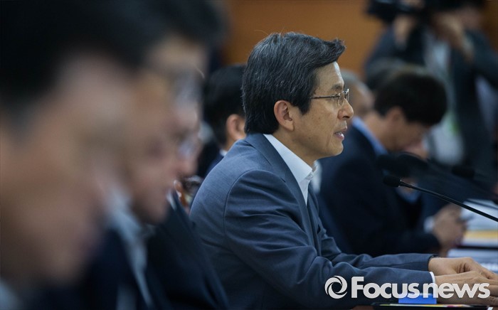 (서울=포커스뉴스) 1일 오후 서울 종로구 정부서울청사에서 황교안 국무총리가 주재하는 '제1차 국가테러대책위원회' 에서 황교안 국무총리가 모두발언을 하고 있다.