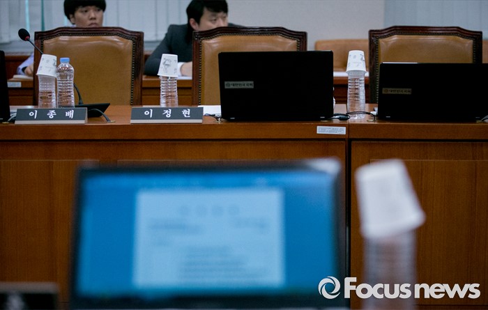 (서울=포커스뉴스) 세월호 참사 당시 이정현 청와대 홍보수석과 김시곤 KBS 보도국장의 전화 통화 녹취록이 공개되며 보도통제 등 논란이 가열되고 있는 1일 오후 서울 여의도 국회에서 열린 교육문화체육관광위원회 전체회의에 불참한 이정현 새누리당 의원의 빈 자리가 보이고 있다.
