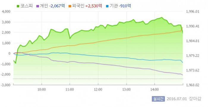 (서울=포커스뉴스) 코스피가 브렉시트(영국의 유럽연합 탈퇴) 우려가 크게 해소되면서 1990선에 바짝 다가섰다.