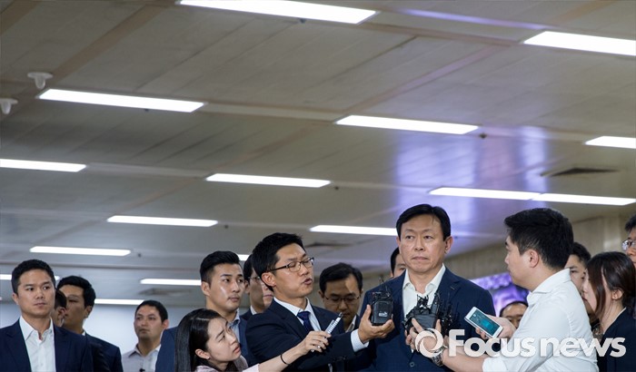 (서울=포커스뉴스) 신동빈 롯데그룹 회장이 3일 오후 서울김포공항을 통해 귀국, 취재진의 질문에 답하고 있다. 신 회장은 이날 기자들에게 최근 롯데그룹을 둘러싼 일련의 사태에 대해 "죄송하다"고 공식 사과 했다.
