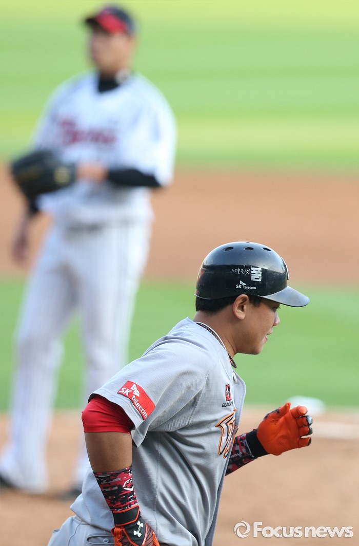 (서울=포커스뉴스) 3일 서울 잠실구장에서 열린 2016 프로야구 SK-LG 경기 3회초 2사후 SK 최승준이 볼넷을 골라내고 1루로 뛰어 나가고 있다.