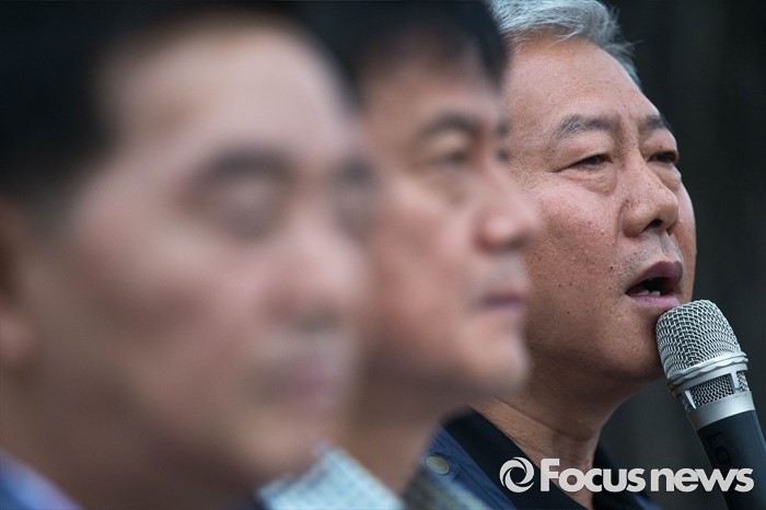 (서울=포커스뉴스) 4일 오전 서울 종로구 정부서울청사 앞에서 양대노총의 최저임금 대폭인상 및 노동자위원 중대 결단을 예고하는 기자회견이 열리고 있다.