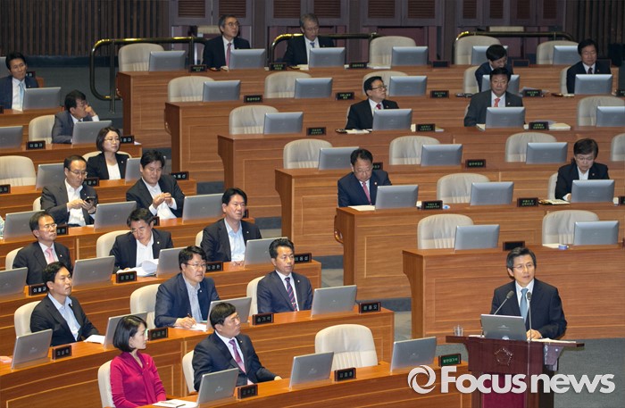 (서울=포커스뉴스) 4일 오전 서울 여의도 국회에서 열린 343회 국회(임시회) 6차 본회의, 경제에 관한 대정부 질문에 참석한 황교안 국무총리가 이종구 새누리당 의원의 질문에 답하고 있다.