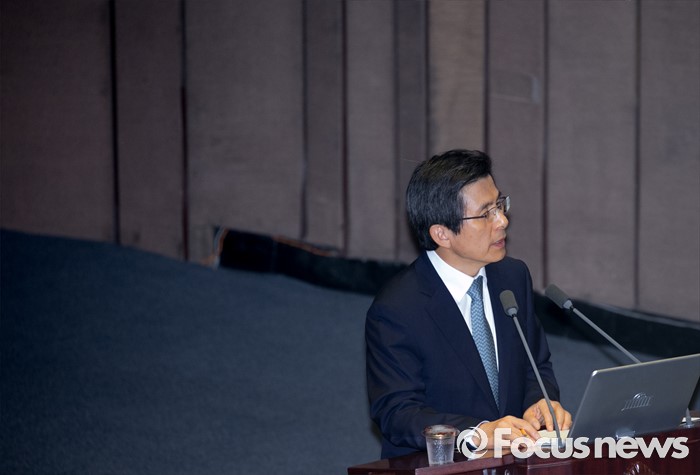 (서울=포커스뉴스) 4일 오전 서울 여의도 국회에서 열린 343회 국회(임시회) 6차 본회의, 경제에 관한 대정부 질문에 참석한 황교안 국무총리가 이종구 새누리당 의원의 질문에 답하고 있다.
