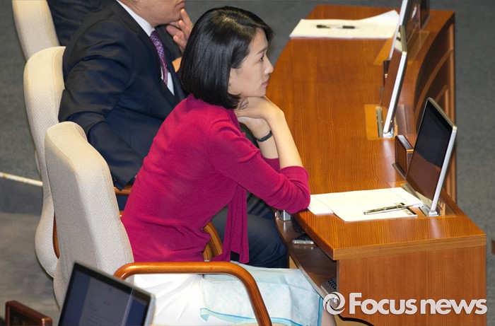 (서울=포커스뉴스) 4일 오전 서울 여의도 국회에서 열린 343회 국회(임시회) 6차 본회의, 경제에 관한 대정부 질문에 참석한 김수민 국민의당 의원이 대정부 질문을 지켜보고 있다.
