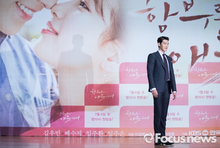 (서울=포커스뉴스) 4일 오후 서울 용산구 하얏트호텔 그랜드볼룸에서 열린 KBS 특별기획드라마 '함부로 애틋하게' 제작발표회에 참석한 배우 김우빈이 포토타임을 갖고 있다.