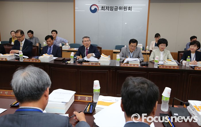 (세종=포커스뉴스) 4일 오후 세종시 정부세종청사 고용노동부 최저임금위원회 전원회의실에서 열린 제8차 전원회의에서 박준성 위원장이 회의를 주재하고 있다.