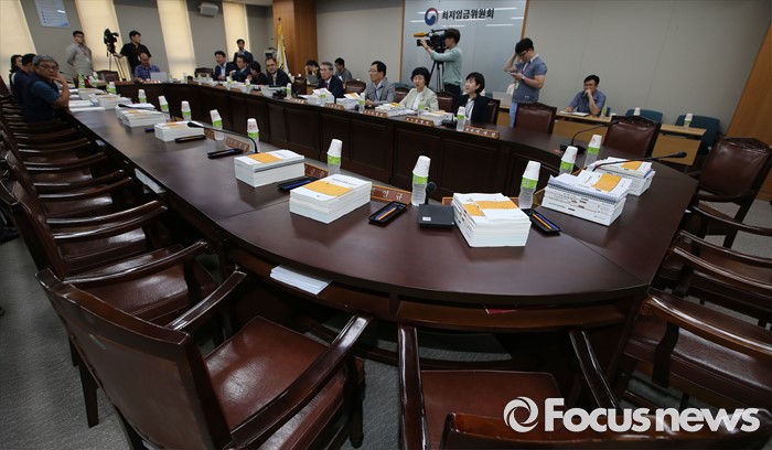 (세종=포커스뉴스) 4일 오후 세종시 정부세종청사 고용노동부 최저임금위원회 전원회의실에서 열린 제8차 전원회의에 사용자 위원들의 빈자리가 보이고 있다.