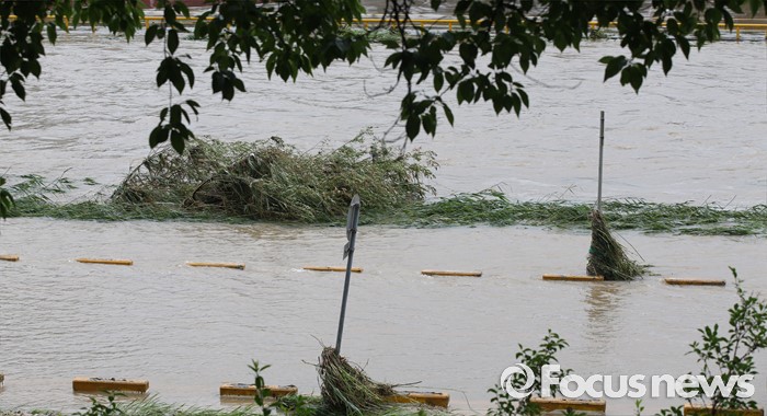 (청주=포커스뉴스) 충청 및 중부지역에 호우경보가 발생한 4일 오후 충북 청주시 무심천 하상도로가 내린비로 잠겨 있다.