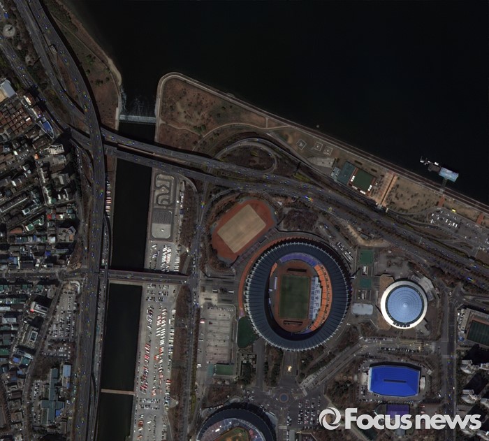 (서울=포커스뉴스) 아리랑 3A호가 촬영한 서울 잠실경기장. 지난해 2015년 3월 26일 발사된 다목적실용위성 아리랑 3A호는 55cm급의 고해상도 전자광학카메라와 국내 최초의 적외선 센서가 탑재된 지구관측위성이다.