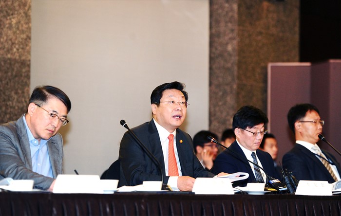 (서울=포커스뉴스) 주형환 산업통상자원부 장관이 5일 오전 서울 소공동 플라자호텔 다이아몬드홀에서열린 에너지신산업 종합대책 토론회를 주재하고 있다. 이날 토론회에는 손양훈 인천대 교수, 강기석 서울대 교수, 김성우 삼정KPMG 본부장, 이해석 고려대 교수, 송재호 국제가스연맹 부회장 등 에너지미래전략위원과 권문식 현대자동차 부회장, 김태극 LS CNS 부사장, 윤경림 KT 부사장, 정도양 PNE시스템즈 대표, 곽창호 포스코경영연구원장, 표인수 법무법인 태평양 변호사 등 관계자 20여명이 참석했다. <사진제공=산업통상자원부>