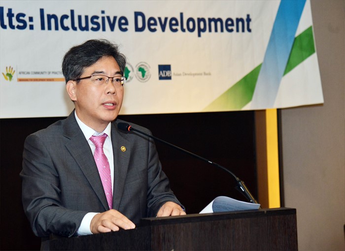 (서울=포커스뉴스) 송언석 기획재정부 차관이 5일 서울시 중구 더 프라자호텔에서 열린 성과중심의 개발정책 국제세미나에 참석해 축사를 하고 있다. <사진제공=기획재정부>